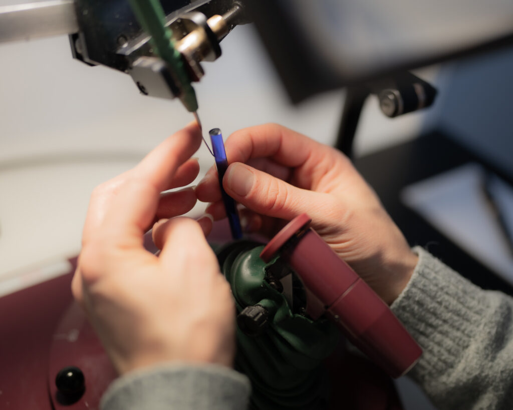 Wir bereiten Ihre Instrumente professional mit einer maschinellen Schleifeinheit auf.