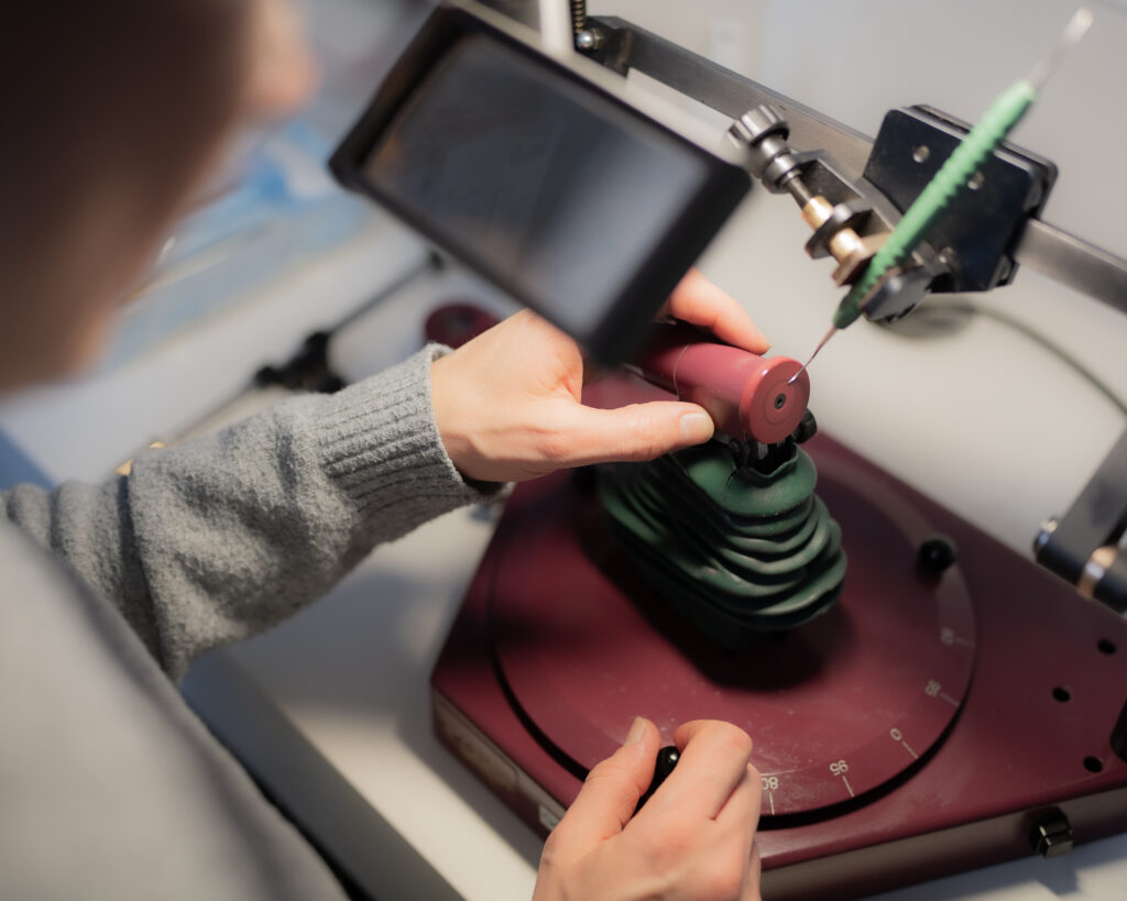 Unsere hochpräzise Schleifeinheit im Praxiseinsatz. Für den perfekten Schliff.